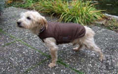 Es ist für "Brandy" die erste Hundebekleidung. Daher ist er noch etwas skeptisch.