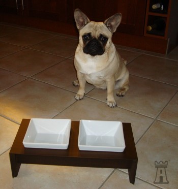 Hündin "Luna" hat von Ihrem Frauchen Tanja einen Hunde- Doppelnapf mit tabac-farbenem Gestell geschenkt bekommen. Nun macht das Fressen der "kleinen Maus" gleich doppelt Spaß.