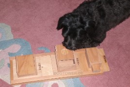 [ Die Schnauzerhündin Aileen hat die Spielesammlung für Hunde