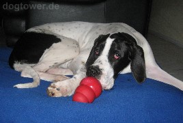 Bin superfroh mit dem Kong, denn Bounty muss zur Zeit ruhig gehalten werden, darf nur kurz an Leine raus, nicht rennen, nicht toben (wegen ner OCD). Das gefällt ihr gar nicht - sie dreht fast am Rad. Daher ist der Kong ne tolle Beschäftigung für drinnen. Mal mit Leberwurst, mal mit Quark gefüllt ist der Kong immer wieder interessant.