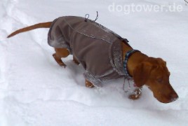 Wir haben die Jacke (Hurtta High Tech Fleece Jacken) zwei Stunden im Tiefschnee getestet. Unsere Annie war bis zum Schluss trocken und warm. Ich hatte Bedenken, dass Schnee in die Jacke kommt, aber das war nicht viel. Auf den Bildern sieht man gut, dass der Schnee an der Jacke haftet. Begeistert war ich darüber, dass das Eis an den Beinen außen blieb und nicht innen am Bein lag. |