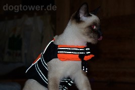 im folgenden Bilder von unserem Kater mit Schwimmweste (Hurtta Lifeguard, orange 0-5kg).