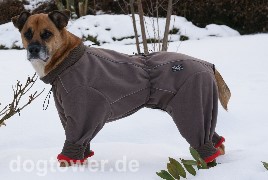 das mach ich gern. Anbei ein Bild von Luca im Fleeceoverall Hurtta Pro, den wir letztes Jahr gekauft habe. Ich finde, er trägt ihn mit Würde ;-)