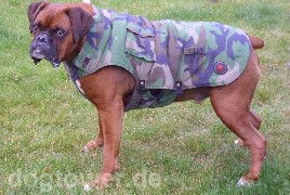 Anbei Fotos von meinem Bullen Bronco Mit freundlichen Grüßen Helmi S., Lübtheen [ Der Boxerrüde hat von Frauchen die Wolters Camouflage Hundejacke geschenkt bekommen. Wir finden - sie steht im fantastisch]