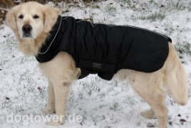 Liebes dogtower-team, die Jacke für unseren Garry ist heute angekommen und passt sehr gut. Viele Grüße Ute P., Glinde [ Golden Retriever-Rüde Garry hat von Frauchen Ute den Outdoor- Hundemantel "Jack", schwarz von Wolters geschenkt bekommen. ]