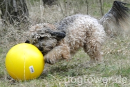 Layla liebt das Fußballspielen! Und mit diesem Push n Play Ball haben wir endlich einen so gut wie unzerstörbaren Ball gefunden, mit dem sie lange spielen kann! Sie kann nicht rein beißen und ihn herum tragen sondern kann ihn nach Belieben vor sich her treiben