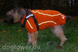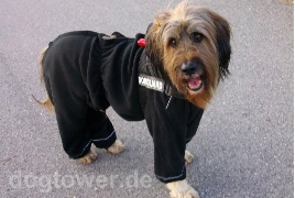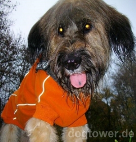 vorab herzlichen Dank für Eure tolle Bearbeitung, wir haben das Paket bereits abgeholt und sind schon mit der Winterkleidung unterwegs. Wie immer, Frauchen freut sich und Monster Merlin spielt die männliche Zicke wenn Er sieht, Frauchen kommt mit Winterschutz... aber es gibt kein entrinnen, Er wird angezogen und man staune, es war doch nicht so schlimm, der Kopf wurde nicht abgerissen (od. was weiß ich was in seinem Kopf rumgeht) und Monster Merlin hat aufeinmal keinen Grund mehr Zicke zu spielen und benimmt sich doch "normal" :-) Auf jeden Fall sind die neuen Erungenschaften wieder total super und Frauchen ist froh, dass das alte Monster geschützt ist, auch wenn das mimosige Monster es nicht versteht und jedes Mal aufs Neue überredet werden muss :-( zum Anziehen. Es ist toll dass es diese Top Schutzkleidung gibt und dem Kerl steht es ausgezeichnet, Er fühlt sich auch wohl, sobald das Anziehen überwunden wurde :-) na ja eben ein Briard....Mimose pur! aber sehr lieb, wie alle Tiere. Anbei vom mimosigen Monster einige Schnappschüsse für Sie zum Schmunzeln. Vielen Dank für Ihre Bearbeitung und in voller freudiger Erwartung auf Ihre Nachricht verabschieden wir uns für heute mit ganz lieben Grüßen und herzlichen Dank für das tolle Service und die wunderbaren Produkte. Wufffff und Liebe Grüße, Wir...Sir Merlin, Isabelle & Murli unsere Katze... Wir sind die MIMs :-), aus Wien [ "Monster" Merlin hat dieses Mal von seinem Frauchen Isabelle den Hurtta Unterziehoverall schwarz und die Hurtta Fleecejacke Pro orange geschenkt bekommen. Darüber wird nun das Julius K9 IDC Gurtband-Hundgeschirr getragen.] |