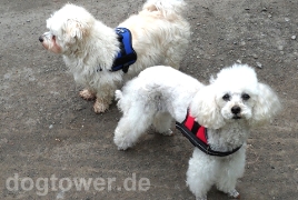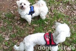 [ Teddy und Beverly wurden von Frauchen u.a. mit dem Julius K9 Hundeschirr in blau und dem Powergeschirr in rot ausgestattet. ]