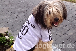 [ Hund Max hat von seinen Zweibeinern das Hundetrikot Poldi von Wolters geschenkt bekommen. ...und es steht ihm perfekt! ]