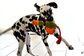 heute war ich ganz aufgeregt, denn mitten im Wohnzimmer stand ein Päckchen für mich ... und zwar von euch Ich habe mich wahnsinnig darüber gefreut und ganz besonders über die tolle Ente ... mit der habe ich sofort ein Tänzchen gemacht. Jetzt bin ich so richtig platt ... (was wohl auch an den leckeren Keksen liegt, die Frauchen mitbestellt hat ) ... dass ich erst mal 'ne Runde schlafen muss