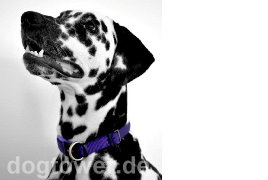 [ Die süße Dalmatiner Hündin Lilly hat dieses Mal von Ihrem Frauchen u.a. das Wolters Hundehalsband Professional Comfort in brombeer/lavendel und die farblich passende Hunter Hundeleine]