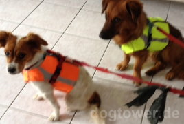 Viele Grüße ! Ingrid Z., Garmisch-Partenkirchen [ Frauchen Ingrid hat Ihre beiden Hunde mit der Hurtta Polarweste in neongelb und der Hurtta Polarweste in neonorange ausgestattet.]