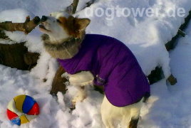 Hallo, anbei das Bild von unserer Ally mit dem tollen Mantel (Wolters "Parka" Hundemantel, pflaume). Viele Grüße Manuela T., München