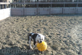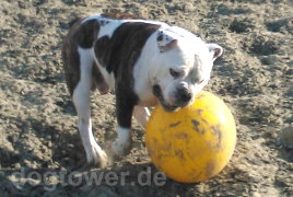[ Boeddha hat von seinem Frauchen das Hundespielzeug Ferkelball geschenkt bekommen. ]