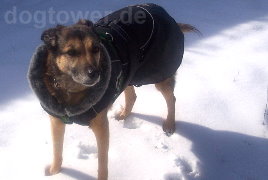 kuscheligen Mantel (Hundemantel Hurtta Pro, schwarz) trägt.