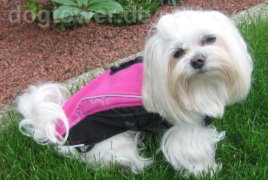 Unser kleiner Malteserrüde Kenai ist der Beste Beweis dafür, dass auch Jungs so eine tolle pinkfarbene Jacke tragen können.