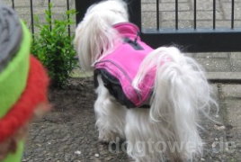 anbei sende ich Ihnen endlich die Fotos mit dem Softshell- Hundemantel Rogz Sport Skin in pink.