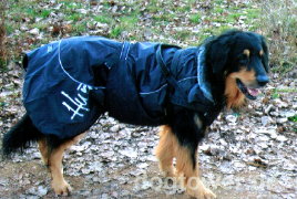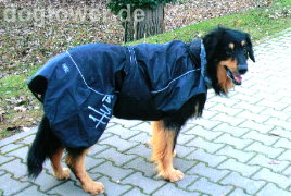 [ Frauchen Monika hat Ihre Hovawart Hündin für eisige Winterspaziergänge mit dem Hurtta Hundemantel schwarz ausgestattet. ]