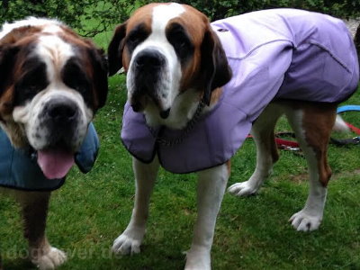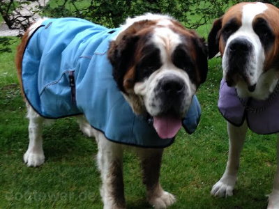 Frauchen Saskia aus Dalfsen hat Ihre beiden "Kleinen" mit der Hurtta Hundekühlweste in blau und der Kühlweste in lila ausgestattet.